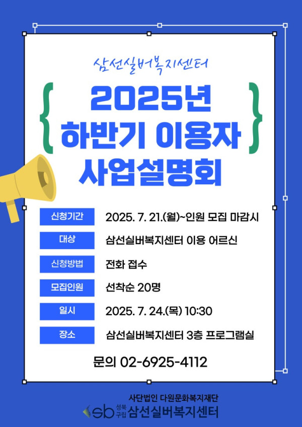 주소 : 02862 서울시 성북구 삼선교로18길 41(삼선동5가, 삼선실버복지센터)